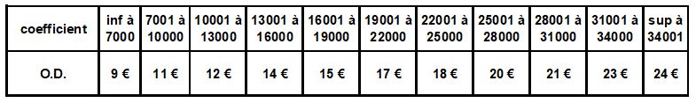 Grille 2025 de participation en fonction de votre coefficient OD (ouvrant droit)