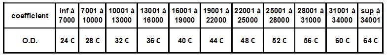 Grille 2025 de participation en fonction de votre coefficient OD (Ouvrant Droit).