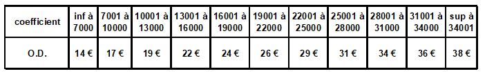 Grille 2025 de participation en fonction de votre coefficient OD (Ouvrant Droit).