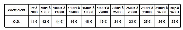 Grille 2026 de participation applicable selon votre coefficient OD (Ouvrant Droit).
