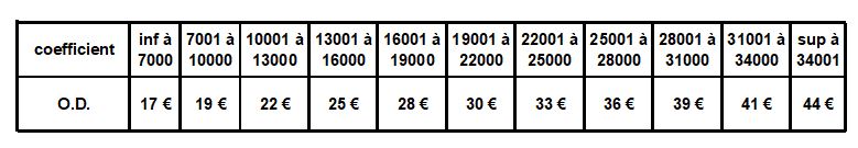 Grille 2026 de participation en fonction de votre coefficient OD (Ouvrant Droit).